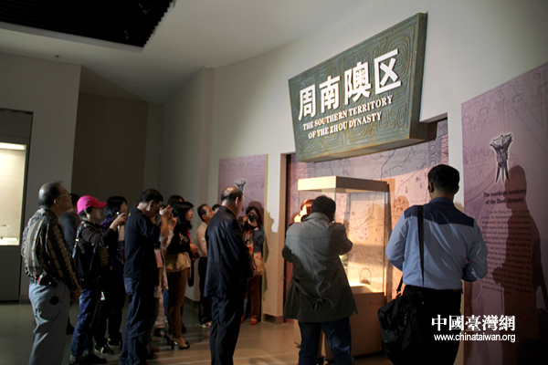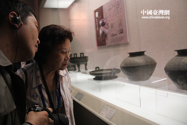 記者們?cè)谧屑?xì)參觀信陽博物館內(nèi)珍貴文物。(中國臺(tái)灣網(wǎng) 普燕攝)