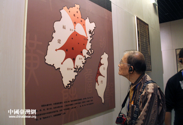 來自臺(tái)灣的黃老先生在觀看豫臺(tái)姓氏關(guān)聯(lián)圖。(中國臺(tái)灣網(wǎng) 普燕攝)