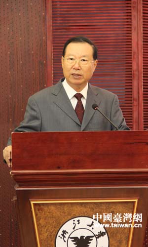 隨后,浙江大學黨委書記金德水、臺灣“國策研究院”董事長兼院長田弘茂、臺灣海基會副董事長許勝雄和臺灣中廣集團董事長張榮恭分別致辭。