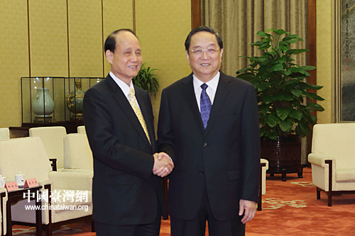 中國臺灣網9月12日消息 12日,全國政協主席俞正聲在北京人民大會堂會見臺灣海基會董事長林中森帶領的海基會董監事參訪團一行。(中國臺灣網 陳佳慧)