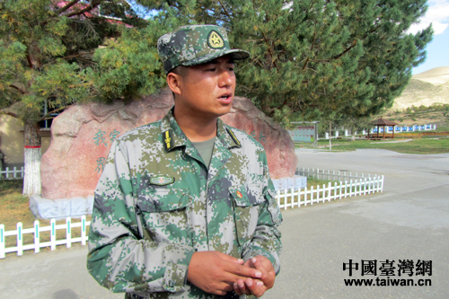 西北邊境第一連連長肖亮接受記者采訪。(中國臺灣網(wǎng) 王偉 攝)