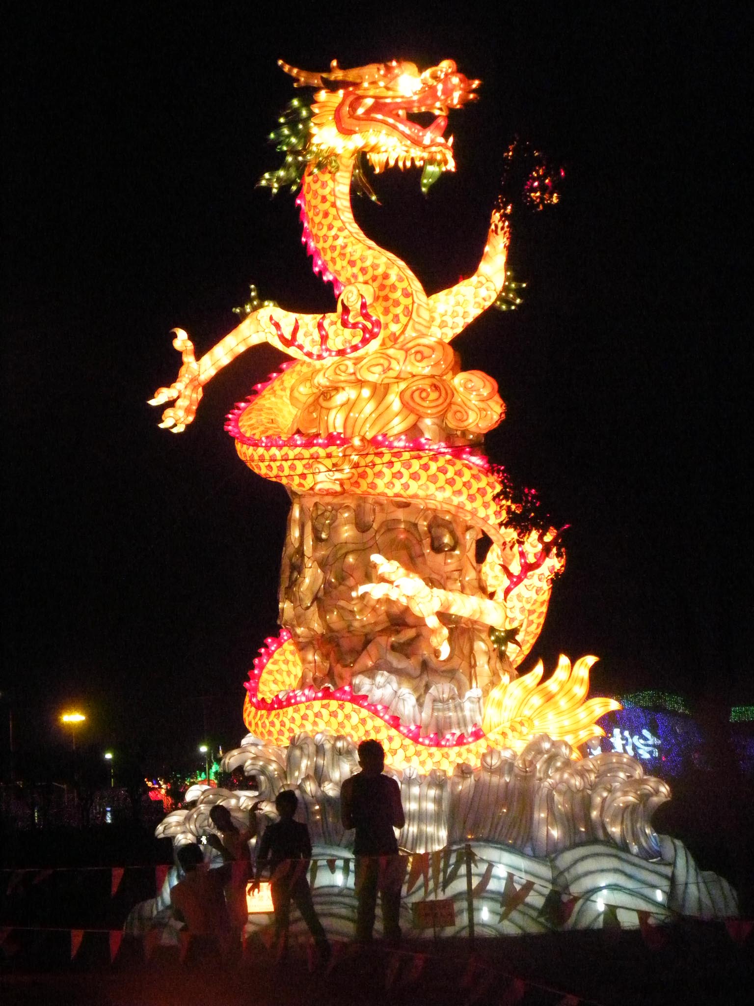 薈萃兩岸傳統(tǒng)文化的首屆海峽兩岸(昆山)中秋燈會9月14日晚首度試燈,當晚60多組大型燈組、30萬平方米七大主題燈區(qū)美輪美奐。一組組流光溢彩的花燈呈現(xiàn)著兩岸相近的中秋民俗傳統(tǒng)、文化風貌以及風格各異的江南水鄉(xiāng)元素、臺灣媽祖文化等特色文化,兩岸民眾喜聞樂見的花卉、寓意吉祥的文化元素交相輝映。圖為燈組金龍獻瑞,預示風調(diào)雨順、四季平安。黃瑩 攝