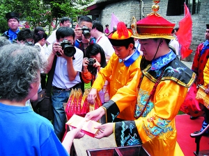 南新倉是國家AAA級旅游景區,傳統的“開倉送福”儀式是歷年文化節備受關注的亮點。為了進一步弘揚漕運文化、倉場文化,今年的“草根皇帝”巡視糧倉和“開倉送福” 儀式將在文化節期間舉行,有30余位身穿清朝官服的演員隊伍簇擁“皇帝”巡視糧倉,現場向民眾發放皇家糧谷送福。