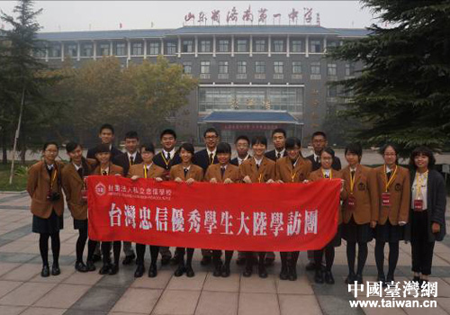 10月29日上午,臺灣師生分別到山東省實驗中學、濟南市第一中學、濟南市第三職業(yè)中等專業(yè)學校參觀,通過課程觀摩、參觀校史館和兩岸教育工作者座談,加深了彼此了解。省實驗中學“我的中國夢”主題語文課、英語外教課程,濟南一中的數(shù)、理、化和藝術(shù)開放觀摩,三職專的財貿(mào)、旅游課程觀摩,引起了寶島師生的濃厚興趣;同學們的零距離交流互動,增進了兩岸學子的相互感情。