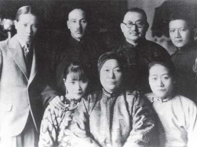 宋美齡、蔣介石與親屬合影。前排左起:宋美齡、倪珪貞、宋藹齡;后排右起:宋子安、孔祥熙、蔣介石、宋子良