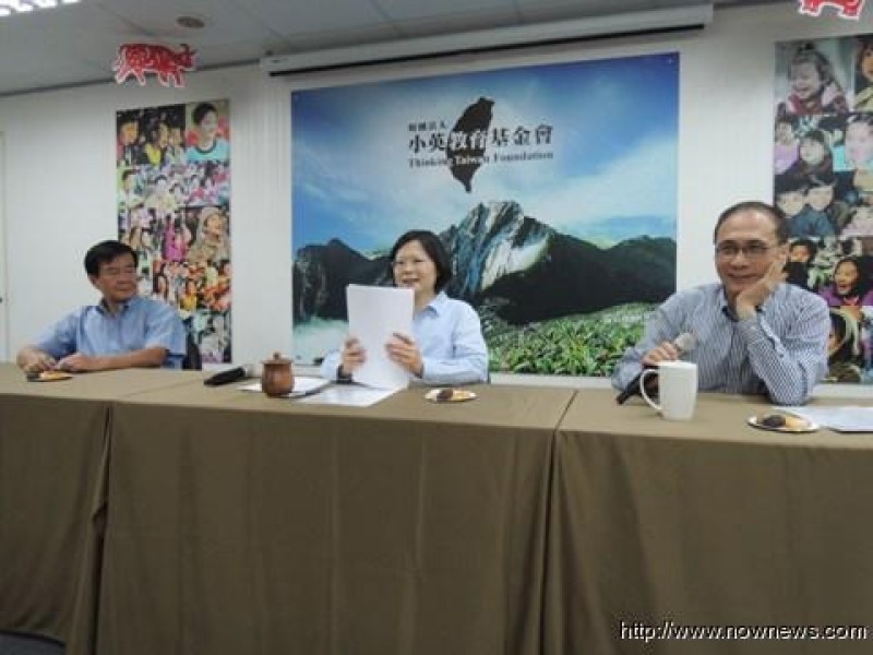 民進(jìn)黨前主席蔡英文(中)、臺(tái)灣當(dāng)局前“國安會(huì)副祕(mì)書長(zhǎng)”江春男(左)、小英基金會(huì)執(zhí)行長(zhǎng)林全。(圖片取自臺(tái)灣“今日新聞網(wǎng)”)