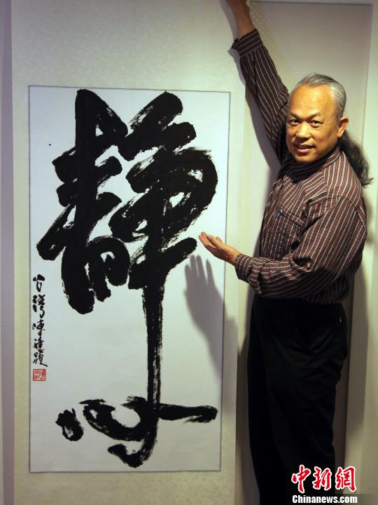 臺(tái)灣著名微雕家陳逢顯以一幅書法“靜心”參展。他說(shuō),臺(tái)灣社會(huì)近期有些浮躁之氣,故揮毫寫了“靜心”兩字參展。陳逢顯除精于微雕藝術(shù)外,在書法、素描、油畫、雕刻、捏塑陶瓷等也都有修為。近10年來(lái)更不遺余力,積極促進(jìn)兩岸書法藝文界之間的文化交流。他的毫芒雕刻館,也常成為大陸書家來(lái)臺(tái)的參訪之地。