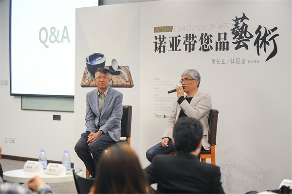 林振龍(左)、蕭長正(右)兩位藝術家在現場舉辦了交流會。