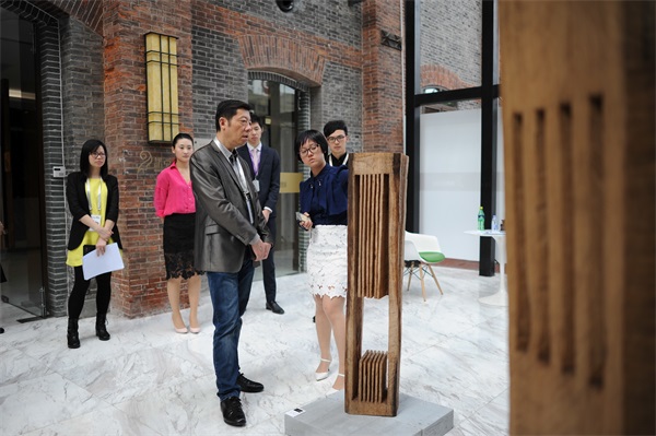 5月9日下午,諾亞財富文創展正式開幕。黃浦江畔的諾亞財富總部和歌斐資產的百年老建筑里,將分別展出了中國臺灣藝術家蕭長正和林振龍的藝術作品。帶有濃厚中國風格的木雕和陶瓷展品與黃浦碼頭和改建后仍保持著老廠房古樸風格的建筑體相映成輝。