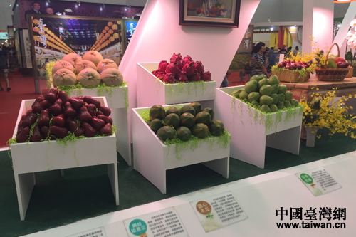 “臺(tái)灣農(nóng)業(yè)精品館”中琳瑯滿目的臺(tái)灣特色水果。(中國臺(tái)灣網(wǎng) 張潔 攝)