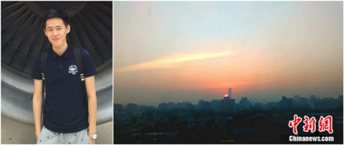 圖一:來(lái)自臺(tái)灣高雄的方學(xué)緯(左),8日清晨拍下他來(lái)中國(guó)農(nóng)業(yè)大學(xué)后的第一個(gè)日出(右),他說(shuō),看到日出有種大學(xué)新生活即將展開(kāi)的感覺(jué),所以順手拍下。(方學(xué)緯供圖)