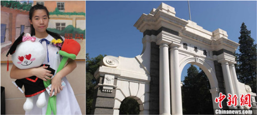 圖二:澳門(mén)女孩梁淑瑩(左)2013年曾參觀(guān)清華校園,對(duì)園內(nèi)建筑印象深刻,今年她正式成為清華建筑系學(xué)生,特意拍下清華二校門(mén)留念。
