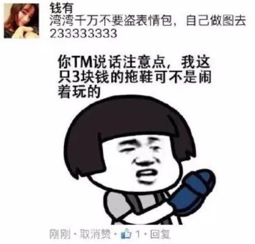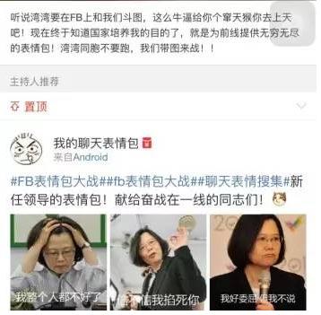 目前,在大陸網(wǎng)友成千上萬種“表情包”(而且圖片和語言還都不重樣)的轟炸下,部分內(nèi)心脆弱的臺(tái)灣網(wǎng)民被嗆得直接找Facebook網(wǎng)站方面舉報(bào),稱大陸網(wǎng)友的“表情包”太粗暴;也有一些內(nèi)心堅(jiān)強(qiáng)的臺(tái)灣網(wǎng)民,則選擇“盜用”大陸網(wǎng)友的圖片素材,重新制成他們的表情包進(jìn)行“還擊”…