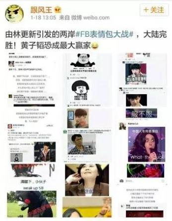 而由于方式是大家通過發(fā)“圖片表情”互嗆,于是這場(chǎng)大戰(zhàn)不僅充滿了詼諧和樂趣,還有了一個(gè)很形象的名字:“FB表情包大戰(zhàn)”。