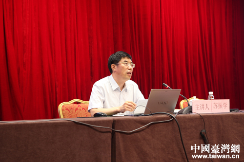 國臺辦研究局副巡視員蘇振學作臺情專題報告。(中國臺灣網 張亞靜 攝)