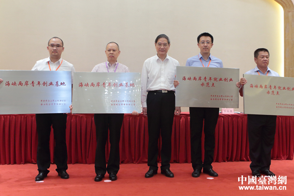 剛才,我們向20個海峽兩岸青年創業基地和11個海峽兩岸青年就業創業示范點授牌。我代表中共中央臺辦、國務院臺辦向被授予海峽兩岸青年就業創業基地和示范點的單位表示熱烈祝賀!