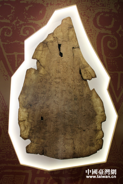 圖為放大的甲骨文片。(中國臺灣網 張玲 攝)