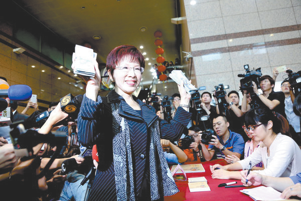 24日,國民黨主席洪秀柱參加“特別黨費勸繳”活動。