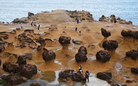 幾名游客在臺(tái)灣野柳地質(zhì)公園游覽(10月18日攝)。由于進(jìn)園游客比往年同期大幅減少,景區(qū)顯得十分冷清。臺(tái)灣觀光部門最新公布的9月統(tǒng)計(jì)數(shù)字顯示,大陸去臺(tái)游客相比去年同期減少37.79%,預(yù)計(jì)全年大陸游客將比去年減少90萬人次。