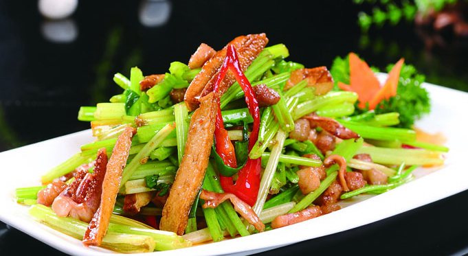 這是一道很親切的家常菜,臺灣的客家餐館都吃得到?图胰俗匀徊粫炎约疫@道專屬的菜肴叫“客家小炒”,而且南北稱謂不同,南部客家人稱“炒魷魚”,北部客家人則喚“炒肉”或“小炒”,自然以豬肉為主角。后來客家小炒逐漸演變,各家飯店根據(jù)口味選擇性地添加豆腐干、芹菜、辣椒、蒜苗、九層塔、蝦米等,展現(xiàn)不同的風(fēng)貌。