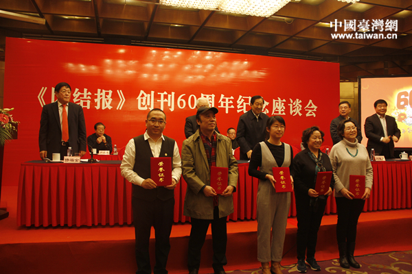 中國(guó)臺(tái)灣網(wǎng)11月22日北京訊 (記者 王亞靜)一甲子風(fēng)雨同舟,六十載春華秋實(shí)。11月22日,《團(tuán)結(jié)報(bào)》創(chuàng)刊60周年紀(jì)念座談會(huì)在北京舉行。全國(guó)政協(xié)、民革中央、中央臺(tái)辦等部門領(lǐng)導(dǎo)、各界學(xué)者嘉賓及熱心讀者代表等近300人出席座談會(huì)。