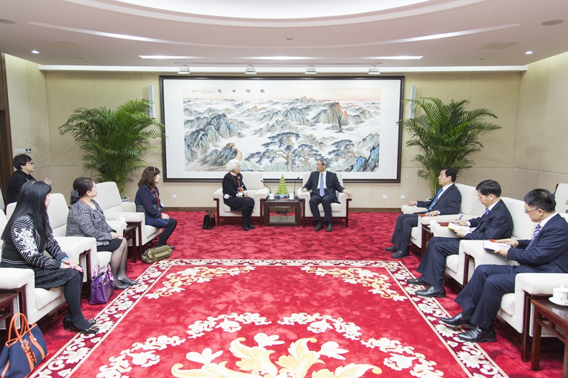 6日下午,張志軍在京會見臺灣女企業(yè)家協(xié)會創(chuàng)會理事長馬愛珍一行。(圖片來源:國務(wù)院臺辦網(wǎng)站)