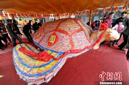 2月6日,5萬斤“大米龜”亮相福建泉州,為兩岸民眾送福。王東明 攝