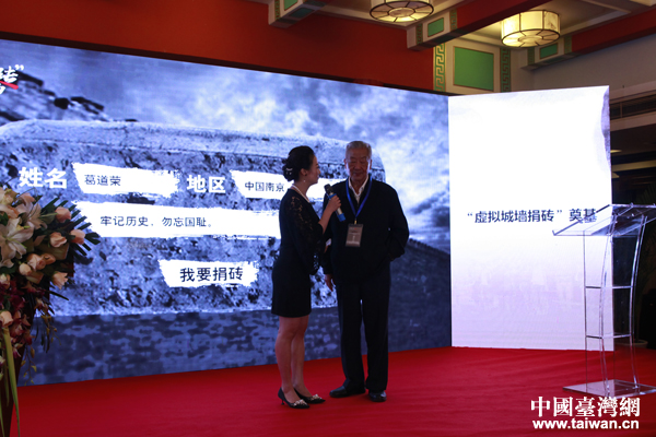南京大屠殺幸存者葛道榮在“虛擬城墻”上捐出了第一塊緬懷逝者的“磚”(中國臺灣網 張亞靜 攝)