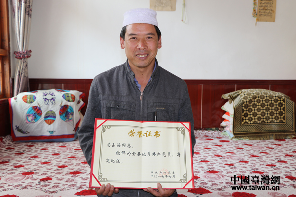 馬玉海被評為全縣優(yōu)秀共產(chǎn)黨員。(中國臺灣網(wǎng) 李寧 攝)