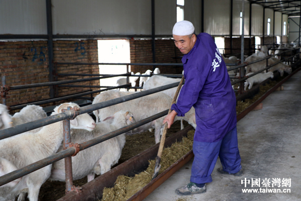 馬天云以前在新疆克拉瑪依給人當架子工,在高處搭架子的工作很危險,聽說家里要辦養殖場,他立馬就回來了。(中國臺灣網 李寧 攝)