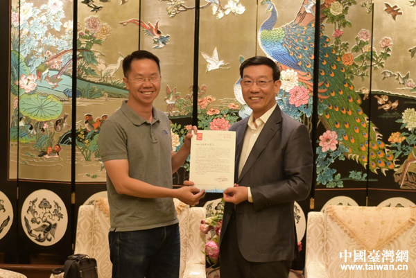 臺灣自造者協(xié)會常務(wù)理事長張哲源,協(xié)會會員、青創(chuàng)業(yè)者楊奕德及辦事處各業(yè)務(wù)組負責人參加了會見。