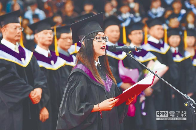 臺灣文化大學(xué)法律系陸生代表畢業(yè)生致詞。(圖片來源:臺灣“中時電子報”)