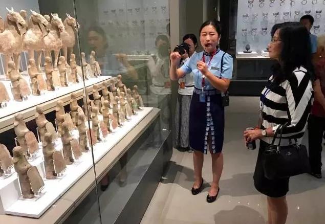 秦慧珠(右)參觀齊文化館。(圖片來源:魯臺之窗)