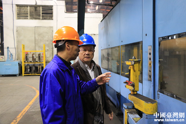 羅文德在工廠負責人的陪同下,視察廠內生產情況。(中國臺灣網 扶海濤 攝)