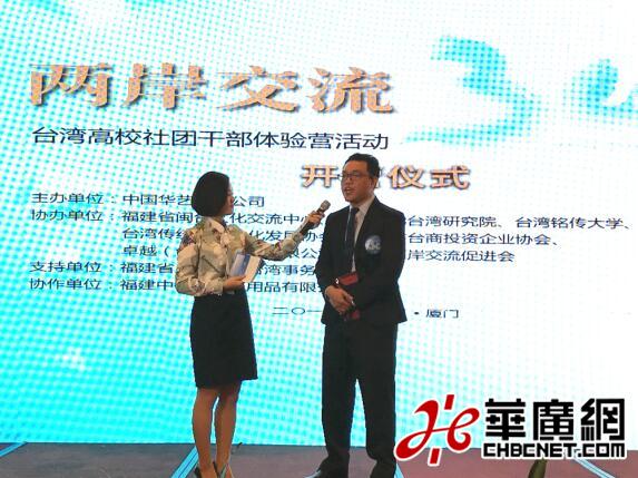 華廣網11月11日訊(記者 孟斌)今天上午,“兩岸交流30年”臺灣高校社團干部體驗營活動在廈門正式拉開序幕。此次活動以“深化兩岸交流,共享發展機遇”為主題,來自臺灣世新大學、銘傳大學等10所臺灣院校的20余位社團骨干將通過實地走訪和互動交流,親身體驗和感受兩岸交流30年來大陸經濟社會發展成果,尋求未來發展機會。中國華藝廣播公司董事長邱雨、國務院臺灣事務辦公室交流局副調研員張志剛、福建省文化廳副廳長林守欽、福建省人民政府臺灣事務辦公室副主任宋志強、福建省閩臺文化交流中心主任黃星、廈門市人民政府臺灣事務辦公室副主任林奕田、廈門市臺商協會會長吳家瑩、臺灣傳統倫理文化發展協會理事長陳孝忠、廈門大學臺灣研究院院長李鵬等參加了啟動儀式。