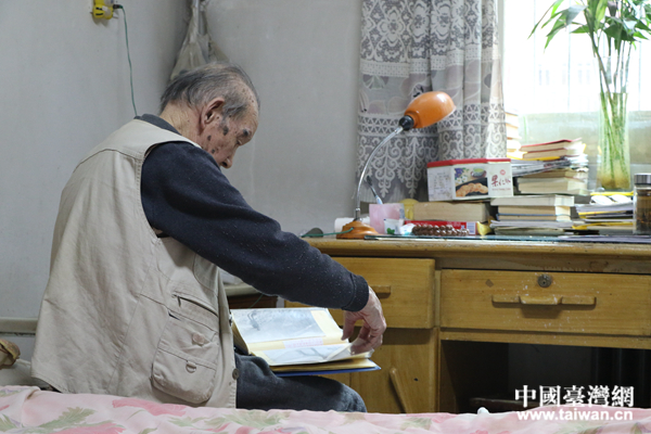 93歲種志斌,坐在床頭翻看老照片。(中國臺灣網(wǎng) 扶海濤 攝)