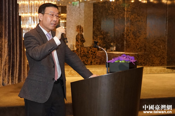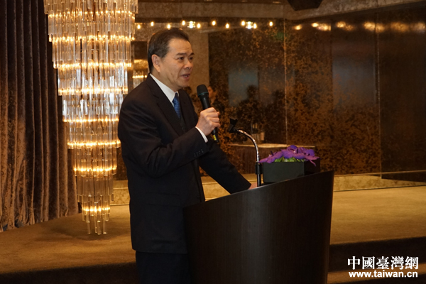 臺(tái)灣工商團(tuán)體秘書(shū)長(zhǎng)聯(lián)誼會(huì)陳瑞隆致辭。(中國(guó)臺(tái)灣網(wǎng)發(fā) 中國(guó)機(jī)電商會(huì)臺(tái)北辦事處供圖)