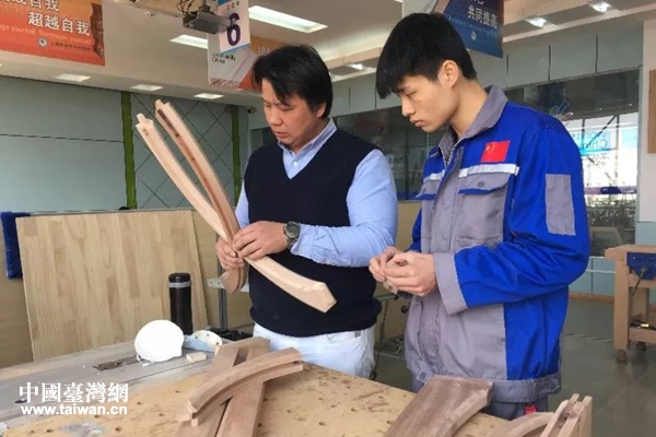 黃上智進行木工創作。(圖片來源:上海市臺辦)