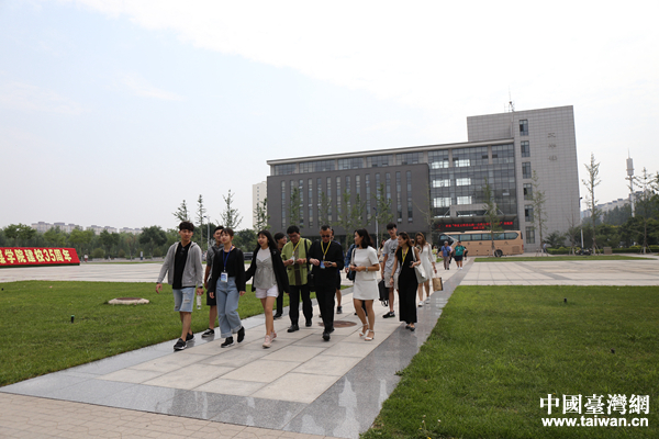 參訪交流團(tuán)行走在山西傳媒學(xué)院校園。(中國臺(tái)灣網(wǎng) 袁楚 攝)