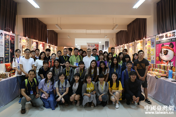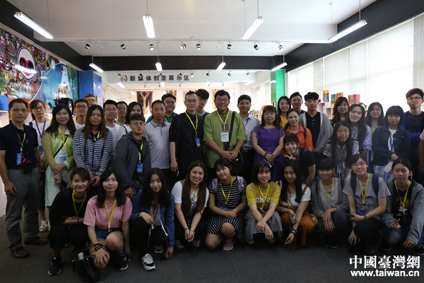 山傳文化科技園內(nèi)合影留念。(中國臺(tái)灣網(wǎng) 袁楚 攝)