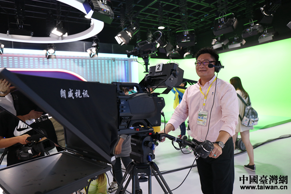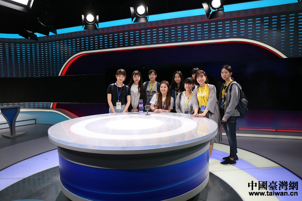 臺(tái)灣大學(xué)生在山西傳媒學(xué)院視頻演播室進(jìn)行體驗(yàn)。(中國臺(tái)灣網(wǎng) 袁楚 攝)