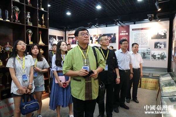 參訪交流團(tuán)參觀山西戲劇學(xué)院榮譽(yù)室。(中國臺(tái)灣網(wǎng) 袁楚 攝)