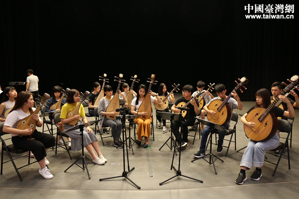 臺(tái)南藝術(shù)大學(xué)音樂學(xué)院彈撥樂團(tuán)的同學(xué)在為交流演出進(jìn)行排練。(中國臺(tái)灣網(wǎng) 袁楚 攝)