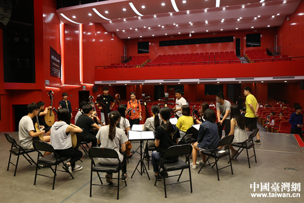 臺(tái)南藝術(shù)大學(xué)音樂學(xué)院彈撥樂團(tuán)的同學(xué)在為交流演出進(jìn)行排練中。(中國臺(tái)灣網(wǎng) 袁楚 攝)