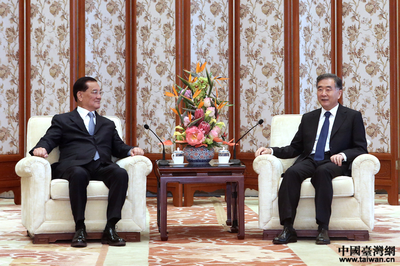 7月13日,中共中央政治局常委、全國政協主席汪洋在北京會見中國國民黨前主席連戰率領的臺灣各界人士參訪團。(中國臺灣網 扶海濤 攝)