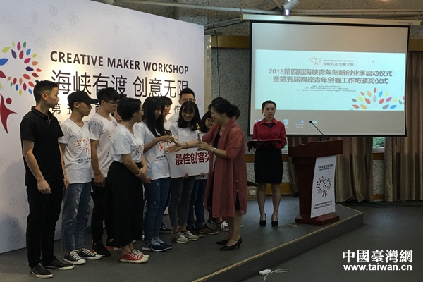 在啟動儀式上,作為本屆創新創業季首個子活動的兩岸青年創客工作坊頒獎活動同時舉行,來自海峽兩岸125名青年分為10組,通過頭腦風暴、創意設計、模型制作、產品商業策劃書編制、ppt展示等,合作設計了10件創意作品,備受評委與當地業者好評,并評出最佳潛質獎、最佳創新獎、最佳創意獎以及最佳創客獎等獎項各2個。經過與企業協商,最終有5支團隊的創客作品與溫州星火科技有限公司、溫州創意設計中心、溫州先臨左岸工業設計有限公司、溫州斯帕克工業設計有限公司等5家企業簽訂了作品專有技術轉讓協議。現場組織頒獎活動上,他們紛紛上臺領獎并敘說獲獎感言。他們借助創新創業季這一平臺,從素不相識到合作創造作品,他們當中的一些創意作品將進入市場化運作,這展現了兩岸青年在一起1+1大于2的積極效應。