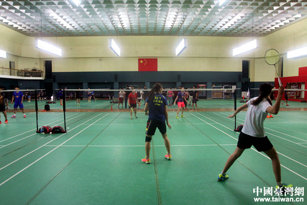 羽毛球訓練場內,熱身完畢的兩岸運動員們自行分組進行切磋。奮力的扣殺,擊球的爆響,在激烈的切磋中,兩岸運動員臉上流露著爽朗的笑容。盡管激烈,運動員們卻沒有緊張感。