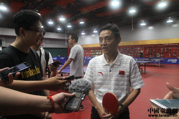 中國乒乓球女隊前主教練陸元盛接受記者采訪。(中國臺灣網 李奕均 攝)