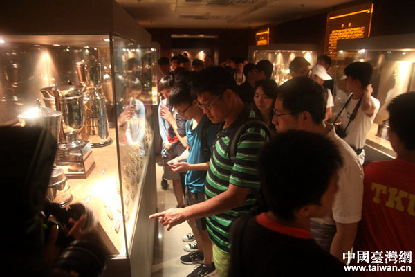 臺灣運動員欣賞榮譽館內的獎杯。(中國臺灣網 李奕均 攝)