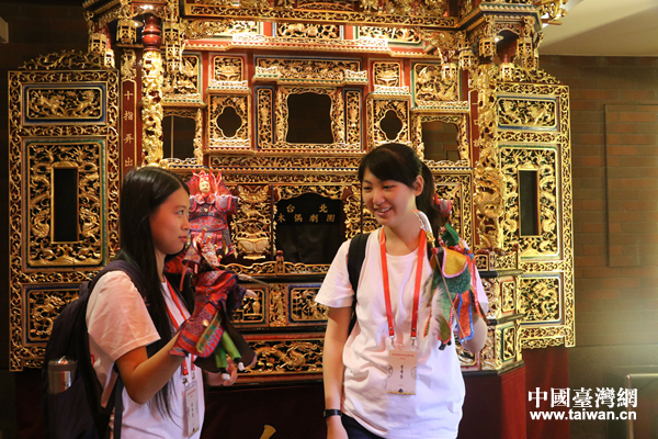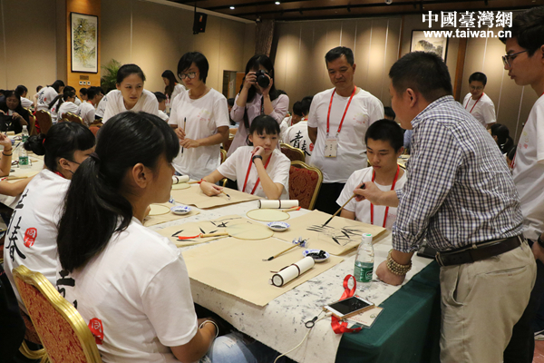 臺灣學(xué)生在臺灣會館體驗?zāi)九加螒颉#ㄖ袊_灣網(wǎng) 汪明珠 攝)